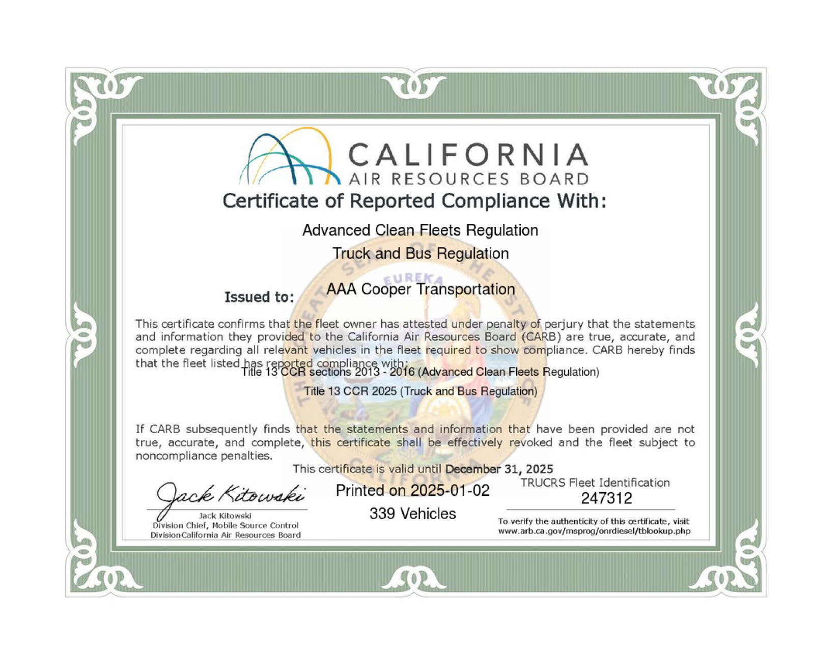 - Use of R99 renewable diesel fuel to reduce emissions.